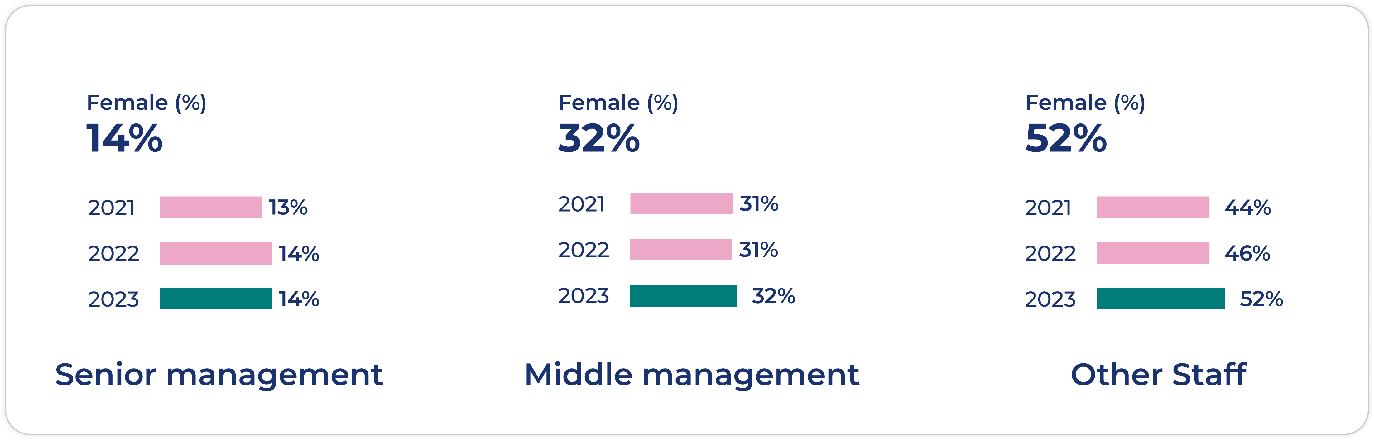 Our efforts extended beyond hiring and retaining our female workforce. These efforts include the introduction of development programs, the provision of mentorship opportunities to foster growth and learning, networking events and workshops to encourage professional growth.